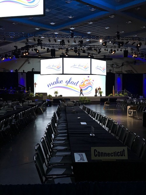 Today was the first day, and for the most part there wasn't as much that happened. The committees that later will discuss various resolutions (pieces of proposed church legislation that will be voted on by the delegates) met this morning to be educated about their assigned issues. If you'd like to read up on what's being discussed this year, visit this link to see the full list. I'll probably share more about what's being discussed when it gets to the vote process.